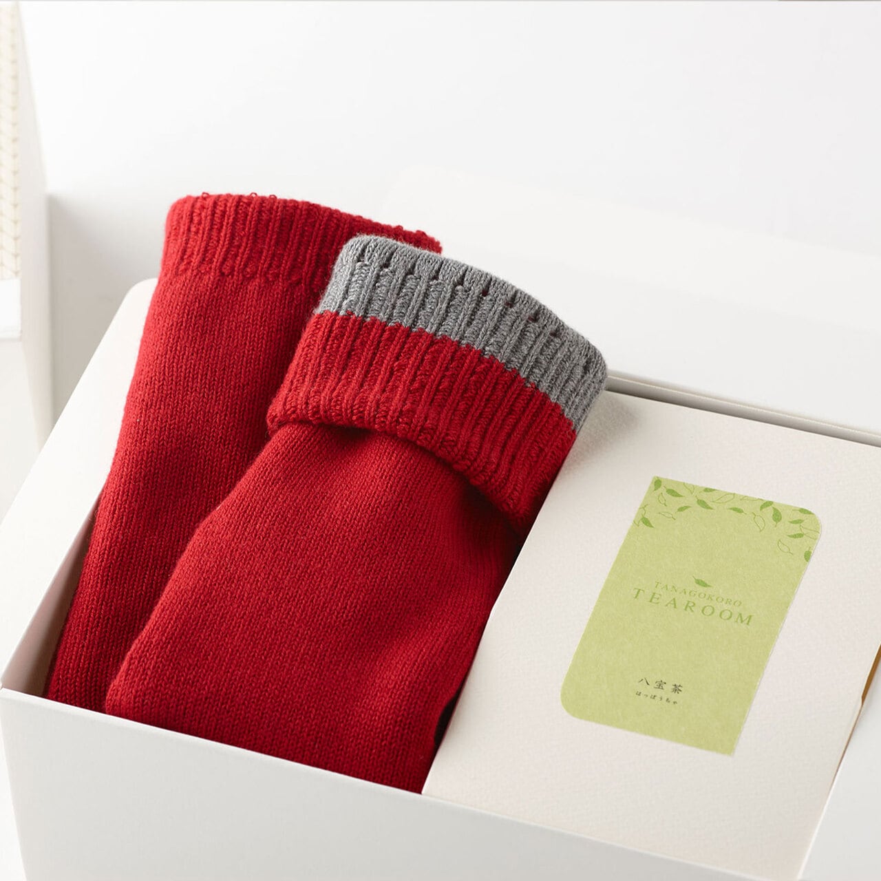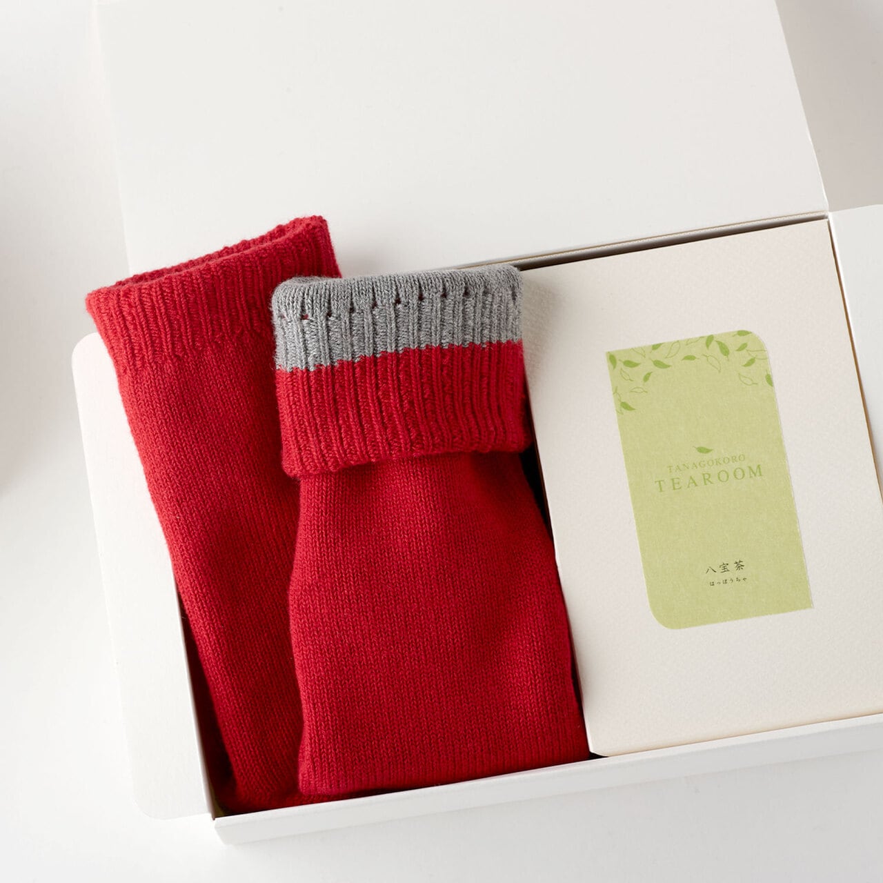 体を温める「八宝茶」と空気に包まれるような軽さと温かさが心地よいニットルームソックスを組み合わせました。